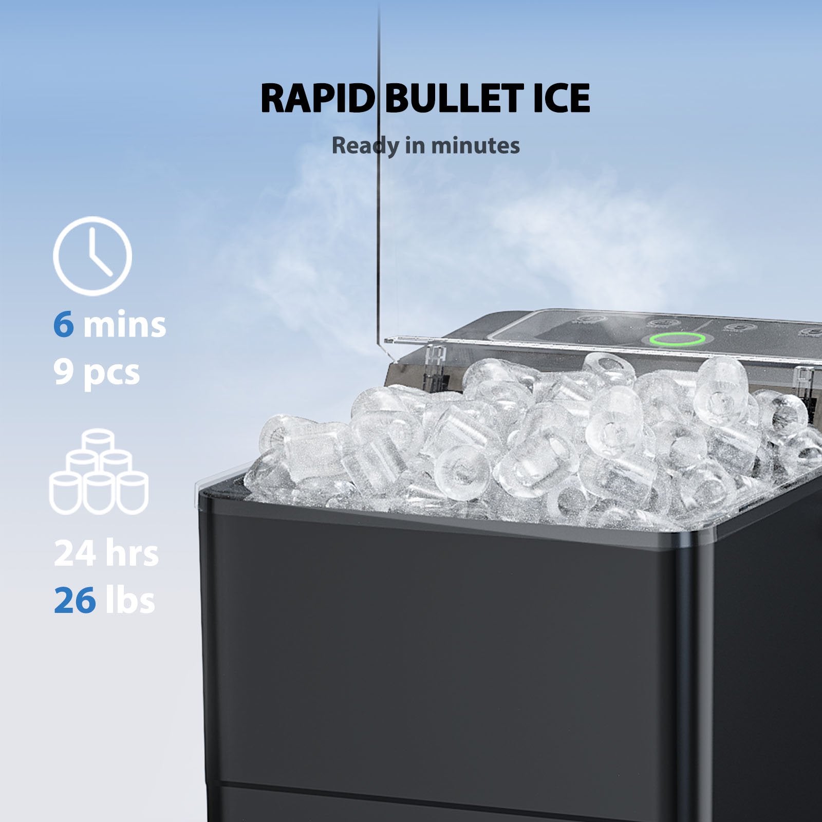 Portable Countertop Ice Maker with Handle, 2.5L Expanding Ice Basket, 26lbs in 24Hrs, 9 Ice Cubes Ready in 6 Mins, Auto-Cleaning Countertop Ice Machine for Home, Kitchen, Camping, RV, Black