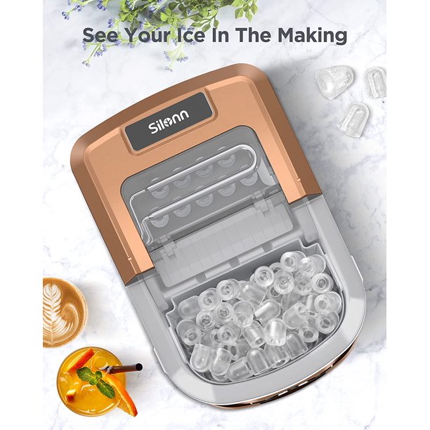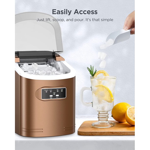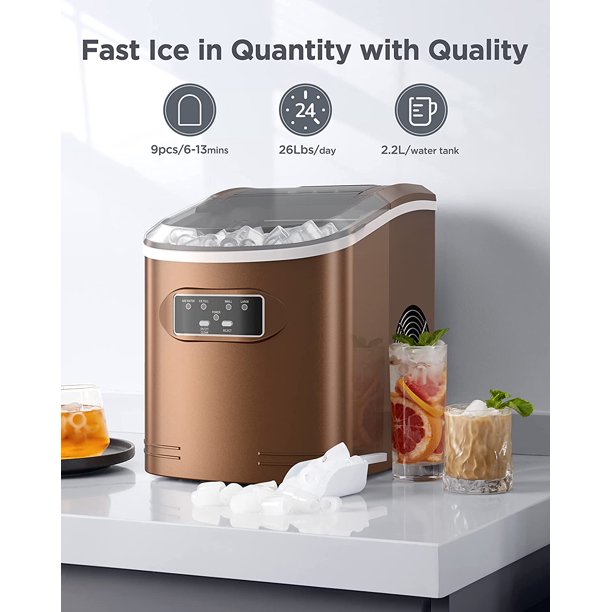 Portable Ice Makers Countertop, 9pcs/6min, 26lbs/24h, w/ 2 Sizes Bullet-Shaped Ice, Self-Cleaning, w/Scoop & Basket for Home, Kitchen, Office, Bar, Party, Bronze - Walmart.com
