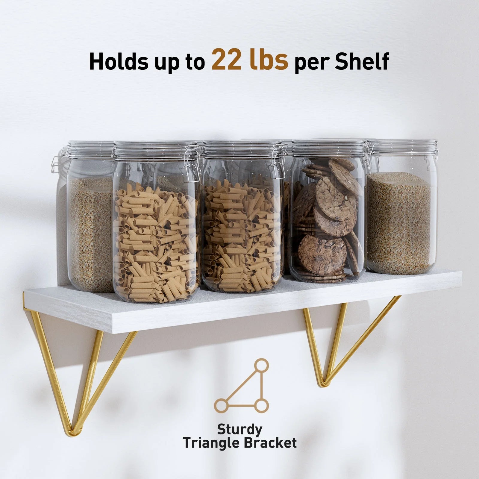 <p>Set of 3 Modern Style Home Decor Wall Mounted Wooden Floating Shelves for Kitchen,Bedroom,Bathroom,Living Room,White<br /></p><p>These wall shelves are the great functional home decoration. Creating more space for your home. You can display books, plants, and created a rustic, industrial style with this floating shelf set.These beautiful unique design wall shelves are made up of lightweight wood. Show off your personal style with an easy shelf display. Super easy installtion, If you install with the seamless nails. Please do not put to much heavy thing on it .this floating shelves can hold up to 20 lbs.Have a great vision for the space and easy to clean.</p><p><b>For Cat Shelf</b></p><p>It is not only some shelves for storage and display, but it is also an ideal cat climber for your lovely pet cat.</p><p><b>For the Kitchen Storage</b></p><p>With storage shelf, the spice, tins, bowl and dish has a place to storage, offering you more space on counter top, making things within arm reach.</p><p><b>Exquisite Rust - Proof Metal</b></p><p>The triangular brackets are stable and versatile as each bracket is carefully crafted by hand soldering.</p><p><b>Strong Bearing Capacity</b></p><p>Smooth gold metal finished brackets ensures the bearing capacity of floating shelves, the max weight capacity of each shelf is up to 40lbs.</p><a href="https://www.walmart.com/ip/Set-of-3-Wall-Mounted-Floating-Shelves-Wood-Rustic-Storage-Shelves-for-Bedroom-Bathroom-Living-Room-Brown/1817385927" rel="nofollow">Set of 3 Wall Mounted Wood Rustic Floating Shelves $ 15.99</a>