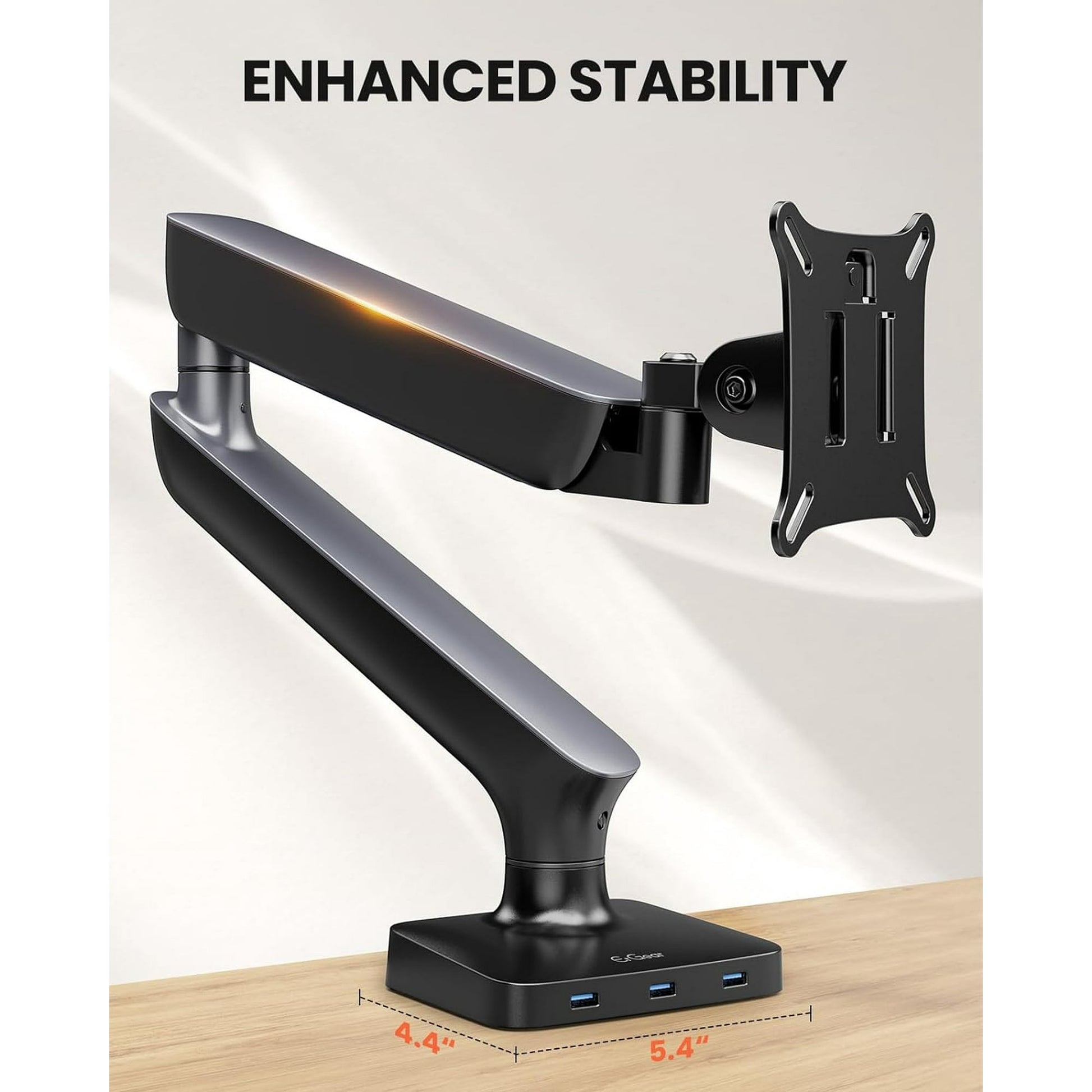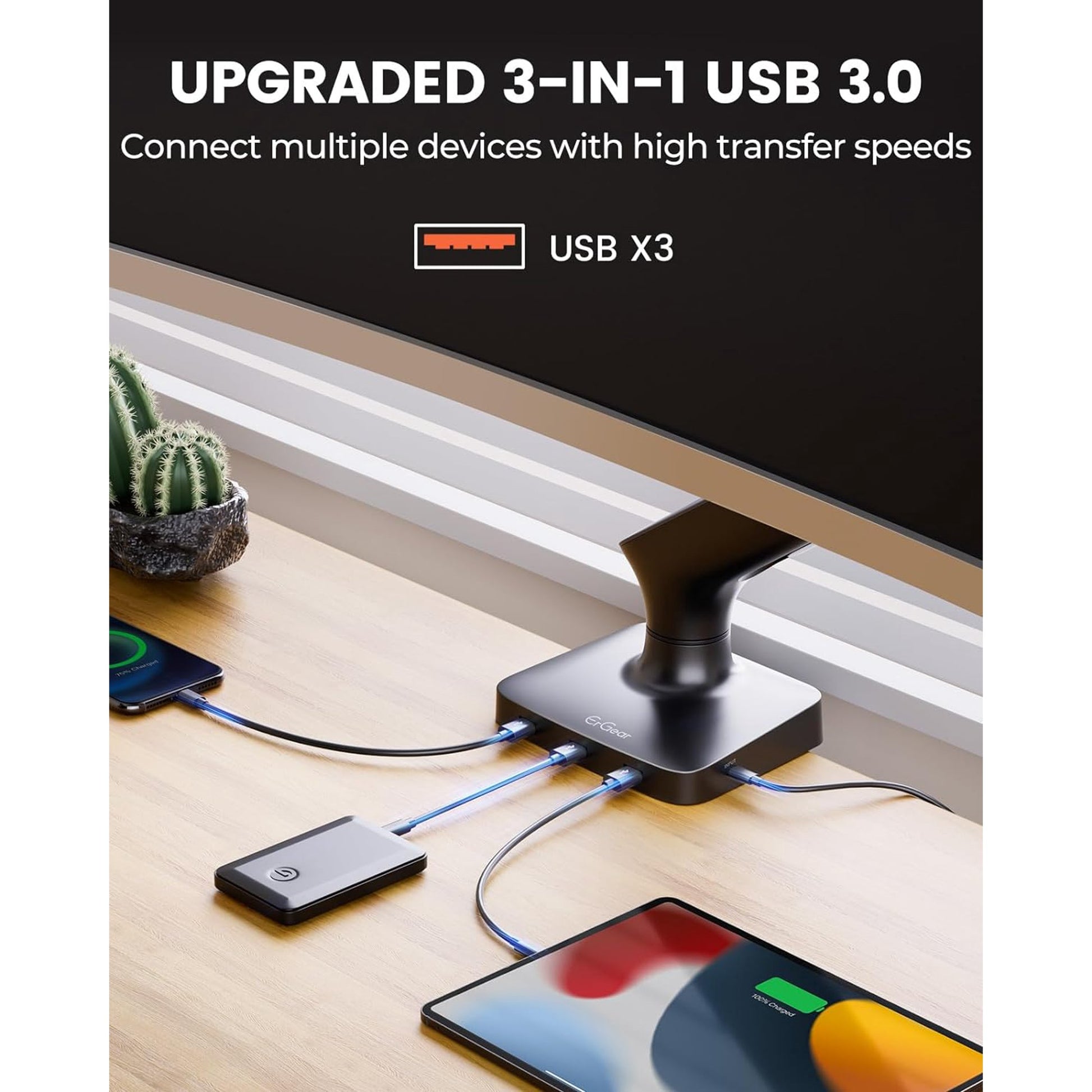 This monitor mount is more than just a stand—it’s your very own connectivity hub, right on your desktop. Plug in your Bluetooth earbuds to charge, connect your flash drive, or power up your wired keyboard directly from the base. Streamline your workspace for more organization and productivity.