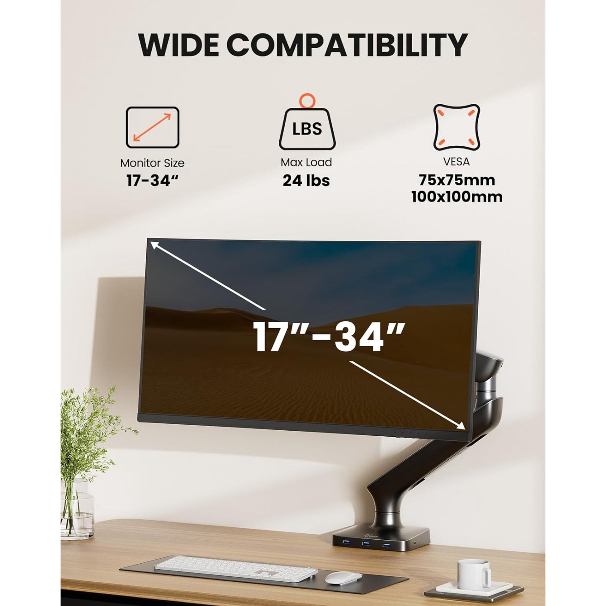- Wide Compatibility: This ErGear single monitor arm is designed to accommodate most 17″–34″ monitors up to 24 lbs with VESA mounting patterns 75x75 or 100x100mm. Please verify the size, weight, and VESA pattern of your monitor before purchase.