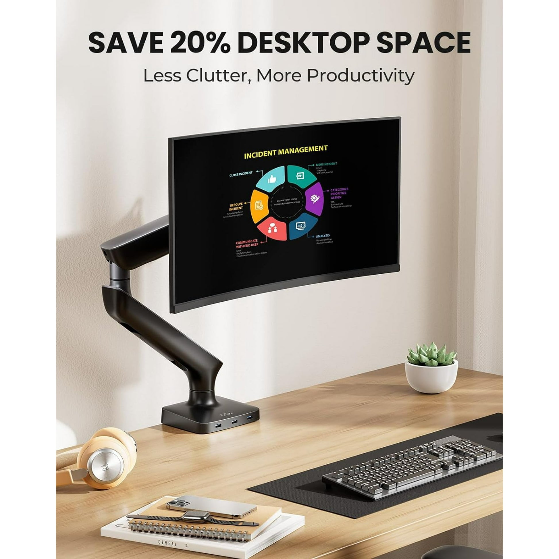 Swivel Ultrawide Curved Monitor Arm - Upgraded Sturdy Desk Mount with USB Hub, Vesa Mount Holds up to 24 lbs