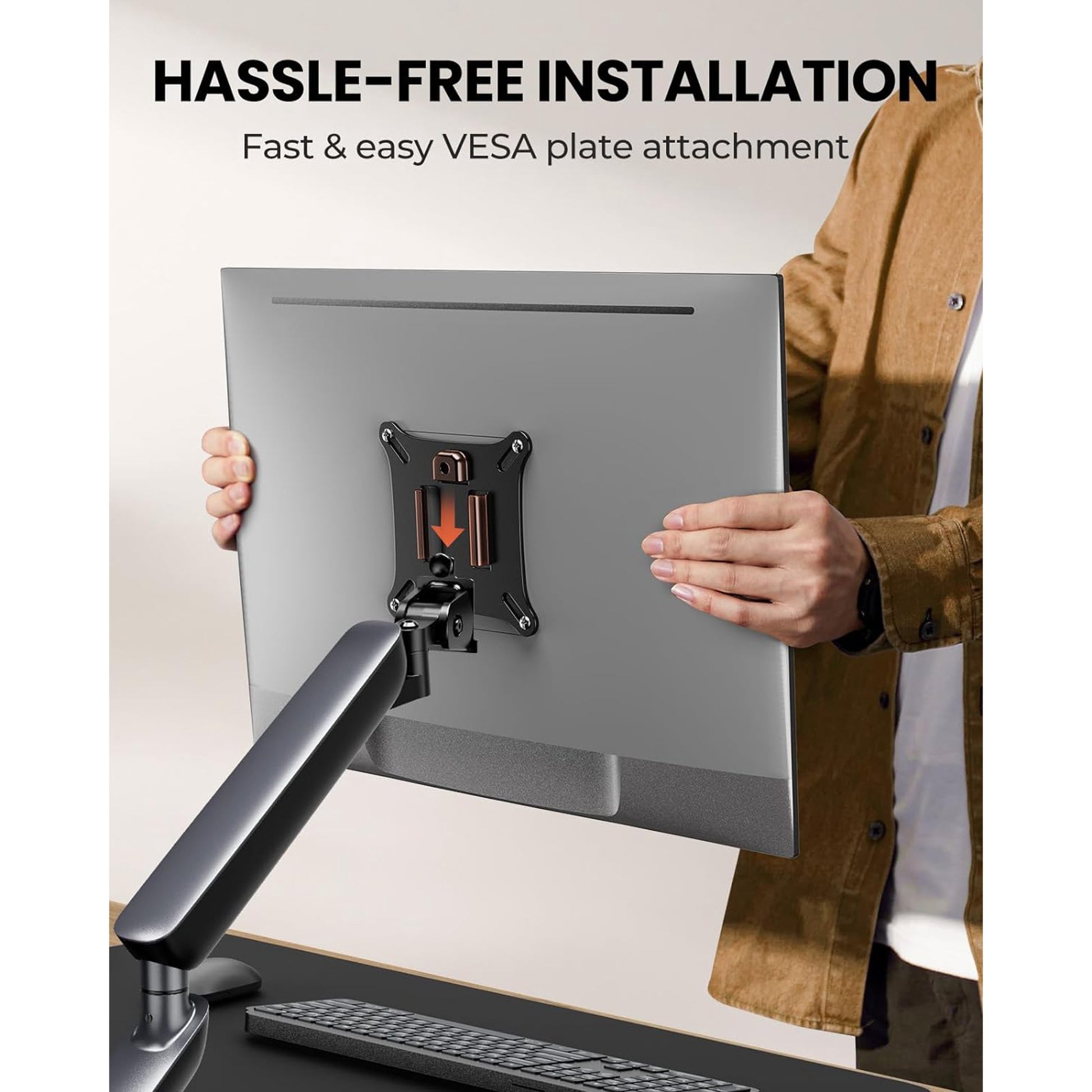 - Hassle-Free Installation: The single monitor mount is easy to install with a VESA plate designed for quick mounting on the monitor arm. Detailed instruction manual and standard mounting hardware is included to make the entire assembly process a breeze.