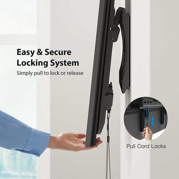 - Solid & Strong: Featuring heavy-duty steel construction and 25 long wall plate, this TV wall mount can easily support TVs that weigh up to 132 lbs. The TV bracket features pull cord locking mechanisms and anti-drop plate edges to ensure that your TV will stay in place