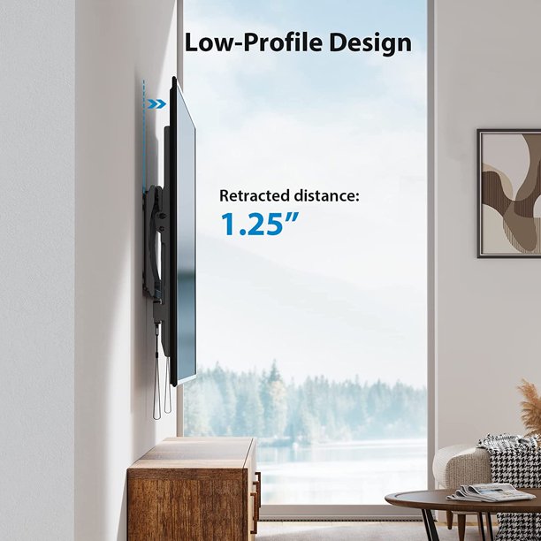 - Comfortable Viewing Experience: This tilting TV mount features 8 tilt to help minimize glare from light sources. The low profile TV wall mount sits only 1.25 from the wall for a clean, streamlined look