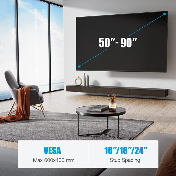 - Wide TV Compatibility: This TV wall mount is compatible with 50-90 inch TVs with patterns 200x100mm to 600x400mm. Designed for 16-24 wood studs, concrete, and brick wall mounting. Do not mount on drywall alone