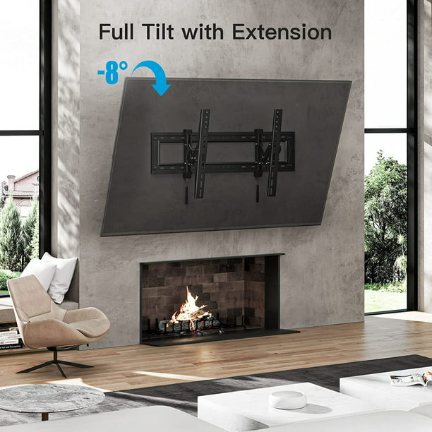 - Full -8 Tilt Range: The large TV wall mount features -8 tilt range to direct the screen toward your position. Even if you own a large 90 TV, the innovative design provides enough flexibility for full downward tilt
