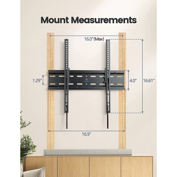 - EASY INSTALLATION: Easy to install on 16-inch wood studs with included hardware. Anchors provided for concrete or brick walls. Please check mounting hole pattern, TV weight, wall stud distance and TV port location to verify compatibility and fit