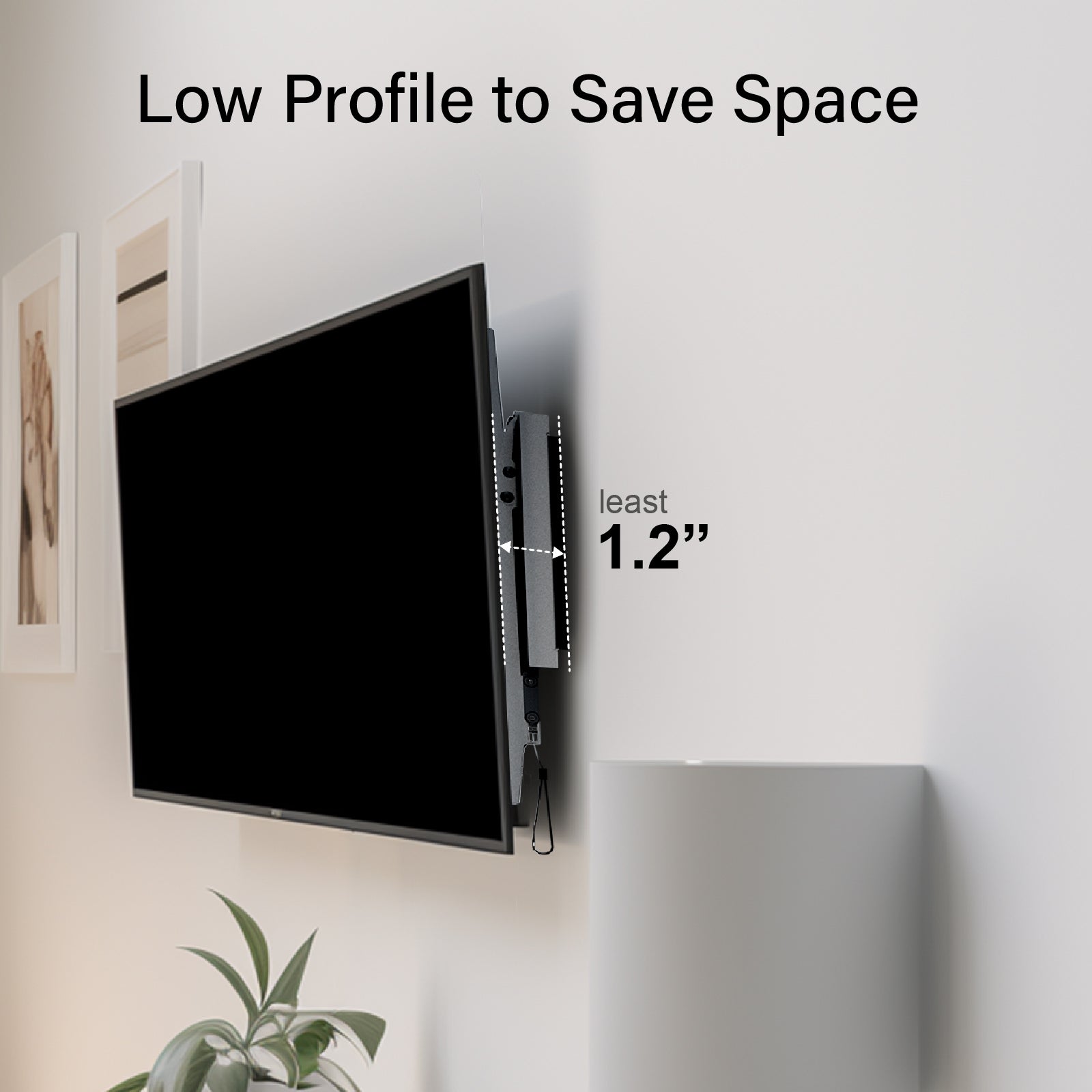 - save space: keep your tv close to the wall to save space. our low profile tilting mount holds the back of the tv just 1.2" away from the wall for a sleek and tidy appearance.