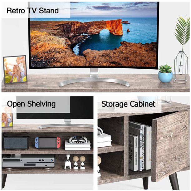 TV Console Table with Storage for 55 inch TV Retro Wood TV Stand & Entertainment Center for Living Room Bedroom - Walmart.com