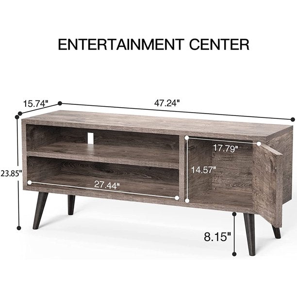 - Spacious Storage- The overall dimension of this retro TV console is 47.24 (L) x 23.85 (H) x 15.74 (W). The cabinet top surface has a loading capacity of up to 110lbs and is suitable for TVs up to 55inch. The cabinet offers spacious storage space for audio-visual equipment, PlayStation, Xbox, soundbar, Blu-ray player holding up to 25lbs of weight