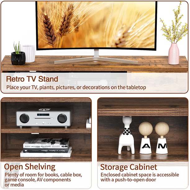 TV Console Table with Storage for 55 inch TV Retro Wood TV Stand & Entertainment Center for Living Room Bedroom - Walmart.com