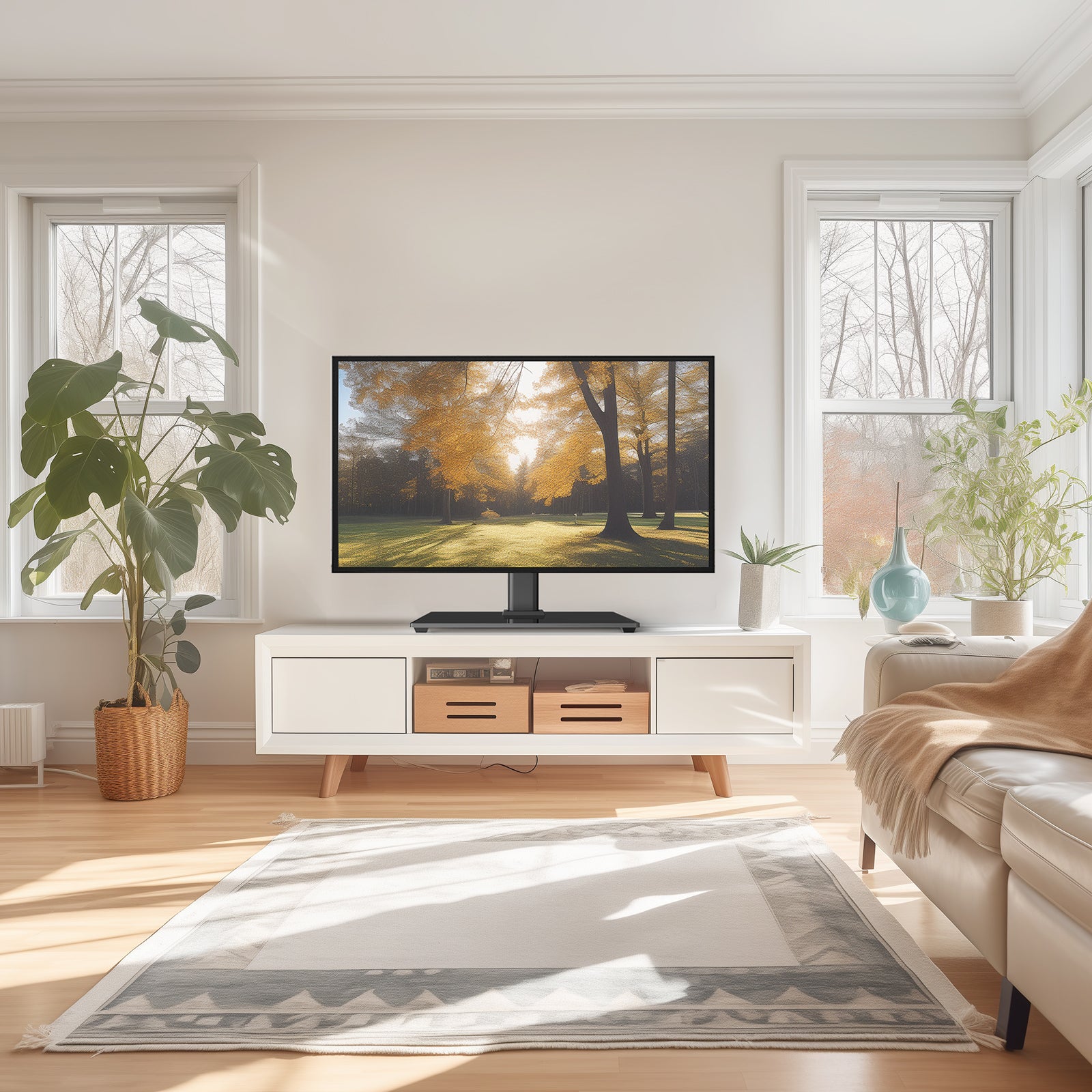Cable management on the back keeps the universal TV stand free of clutter and cables. Helping you conceal cables and keep your family safe from electrical hazards.