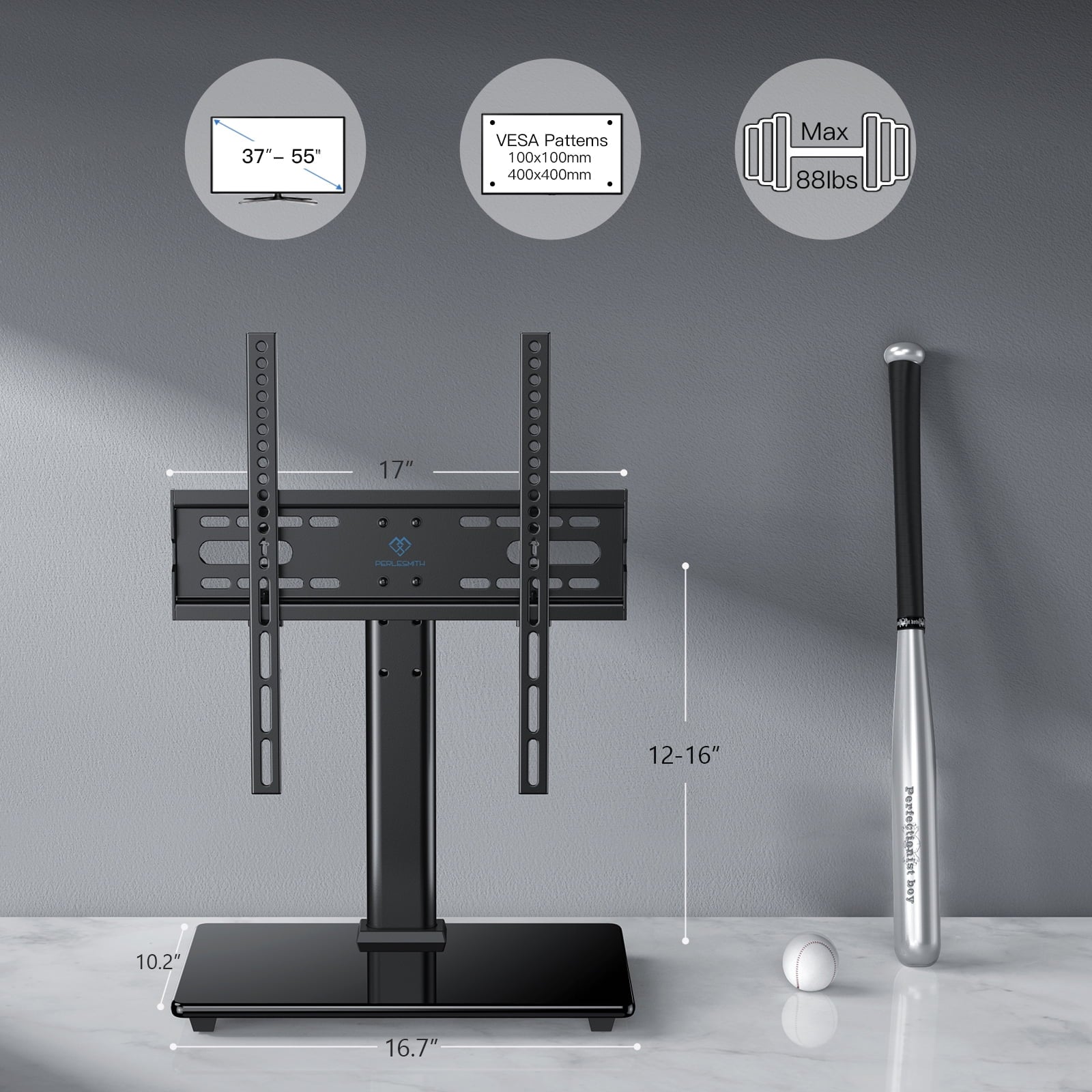 Universal TV Stand for 32-55 Inch TVs Height Adjustable TV Base Stand with Tempered Glass Base & Wire Managemen, Hold up to 88lbs, Max 400x400mm